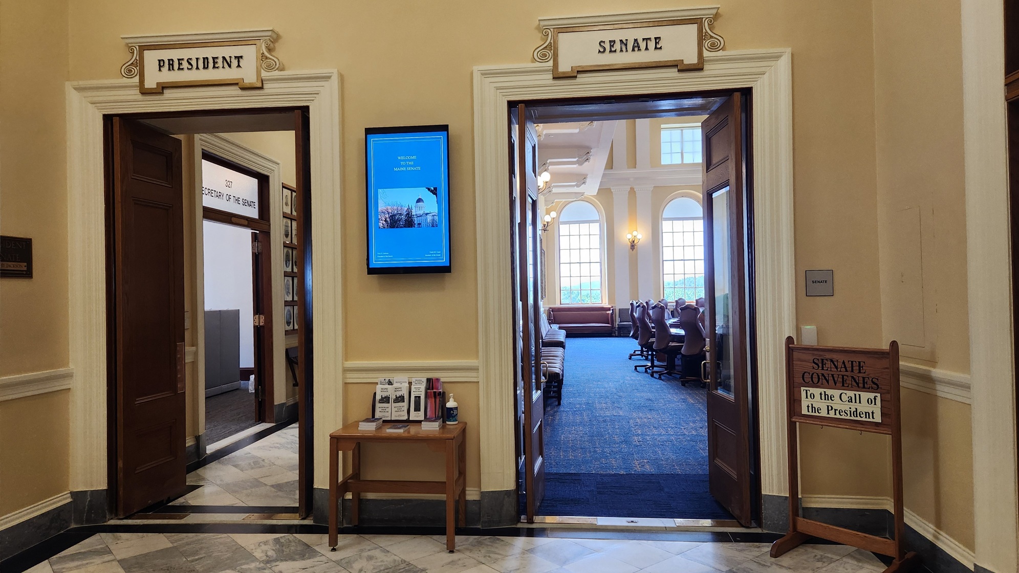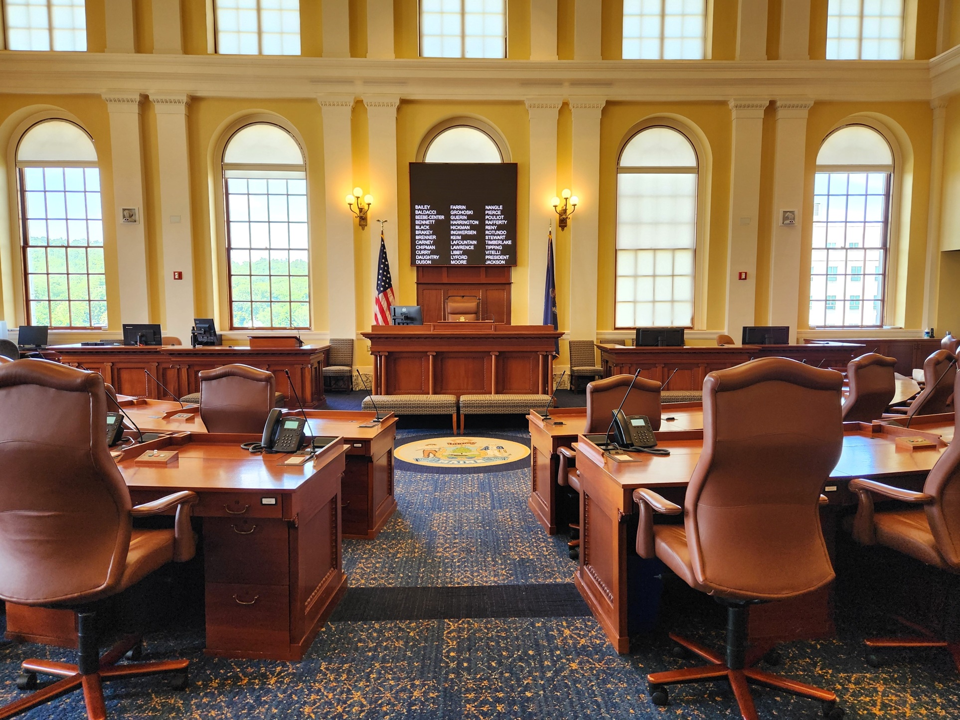 One more interesting Maine State House fact: chairs line the walls of the Senate and House rooms, and citizens are allowed to occupy those to watch the proceedings. All the other state houses that we have visited have upstairs galleries where visitors can observe what is happening on the floors below.