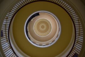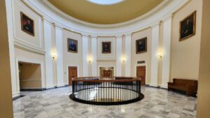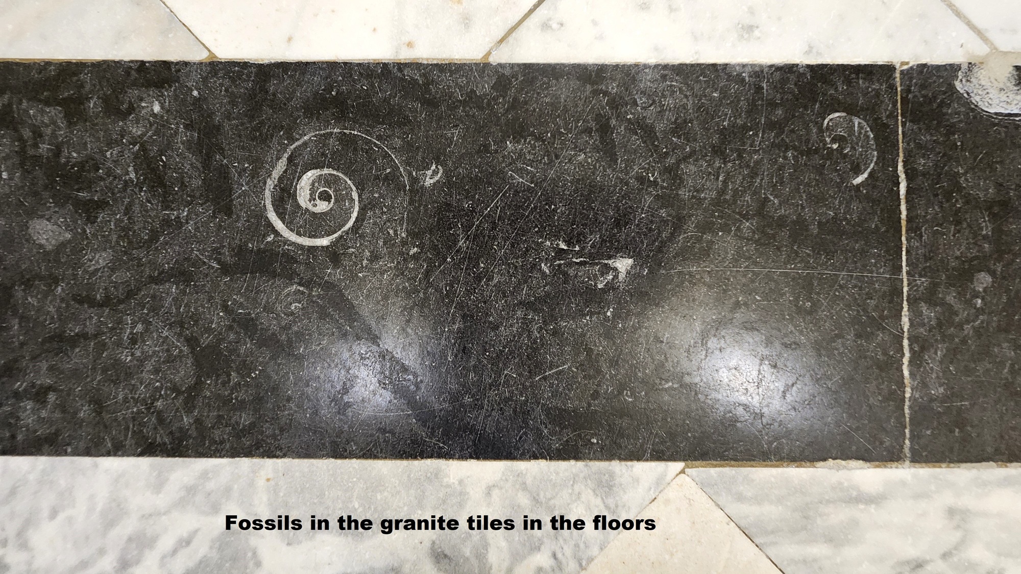 Fossils were imbedded in the granite used for the flooring, so they get the prize for ‘most interesting floor’ of any capitol buildings!