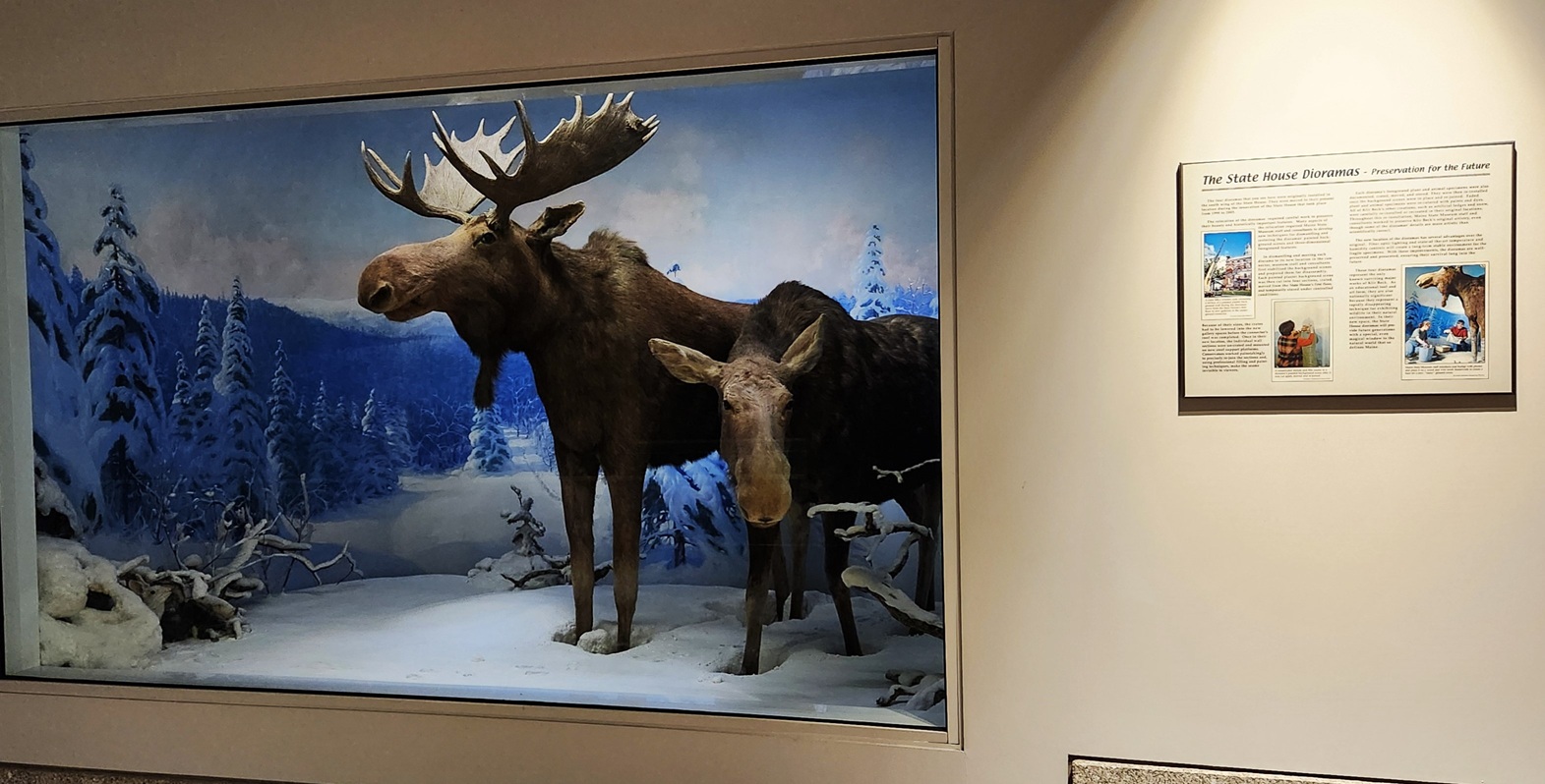 Also somewhat unique are the dioramas with life-sized mounts of Maine animals that line a basement concourse leading to the parking garages.