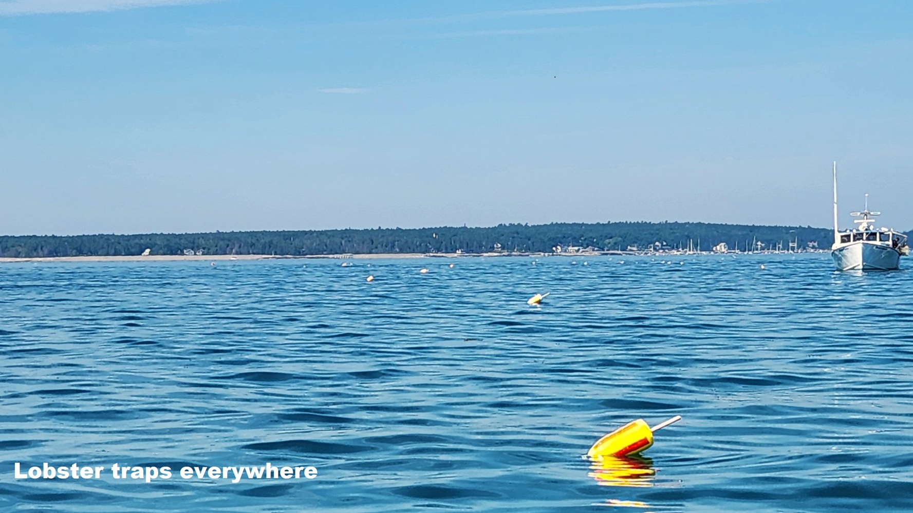 Lobster traps are everywhere, and we learned that the lobster population is thriving due to careful lobstering practices that everyone follows. So, learning that, we had lobster rolls for lunch…in fact we ate LOTS of lobster rolls while in Maine…never did get tired of them.