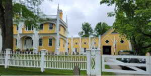 The most-photographed house in Maine is in Kennebunk (next to Kennebunkport) and it is called the ‘Wedding Cake House’, is privately owned and on a busy street with no parking. So, our way to view it was to drive past twice and snap a photo out the window.