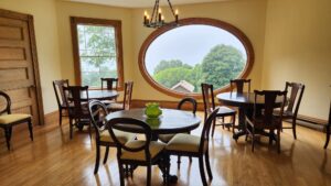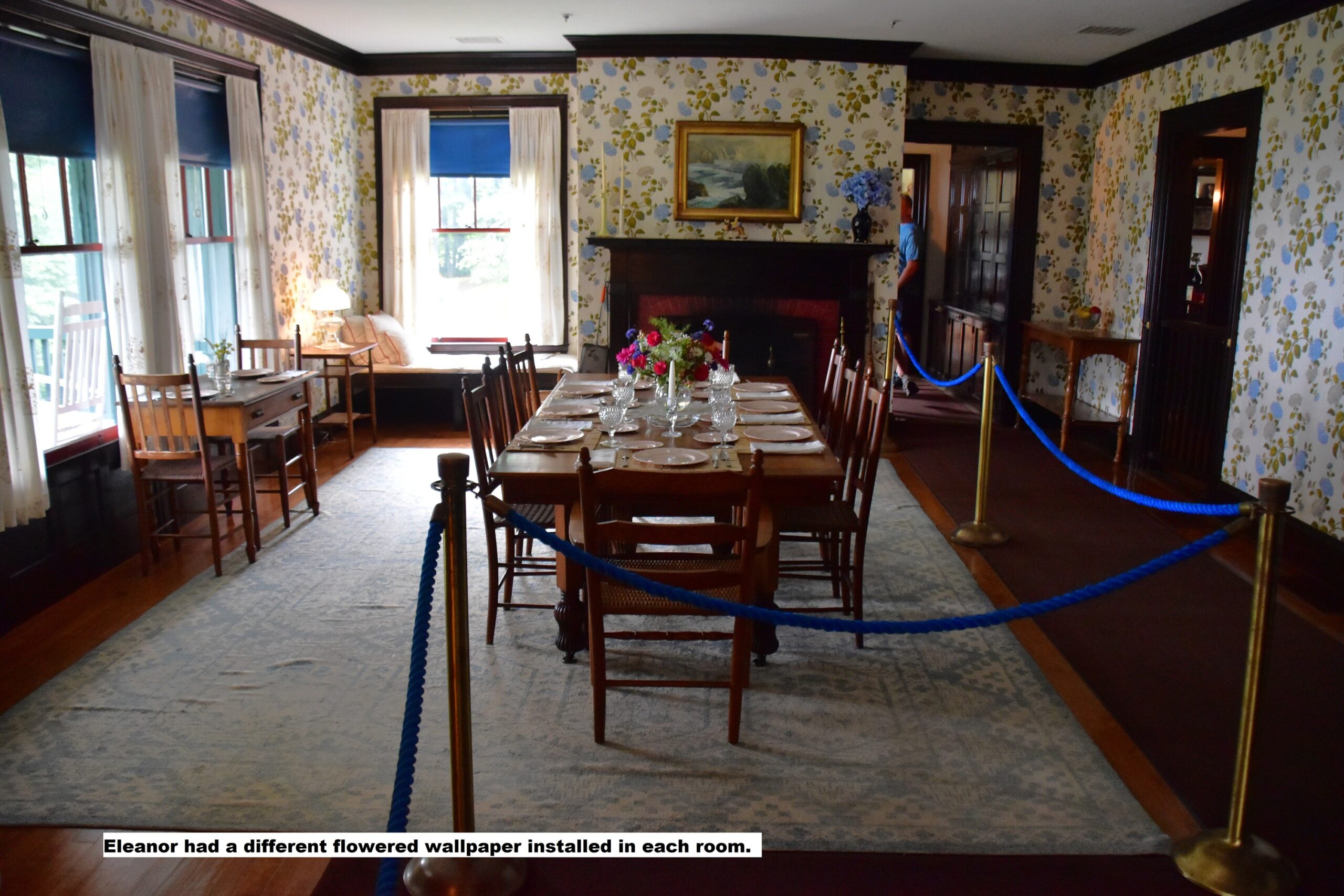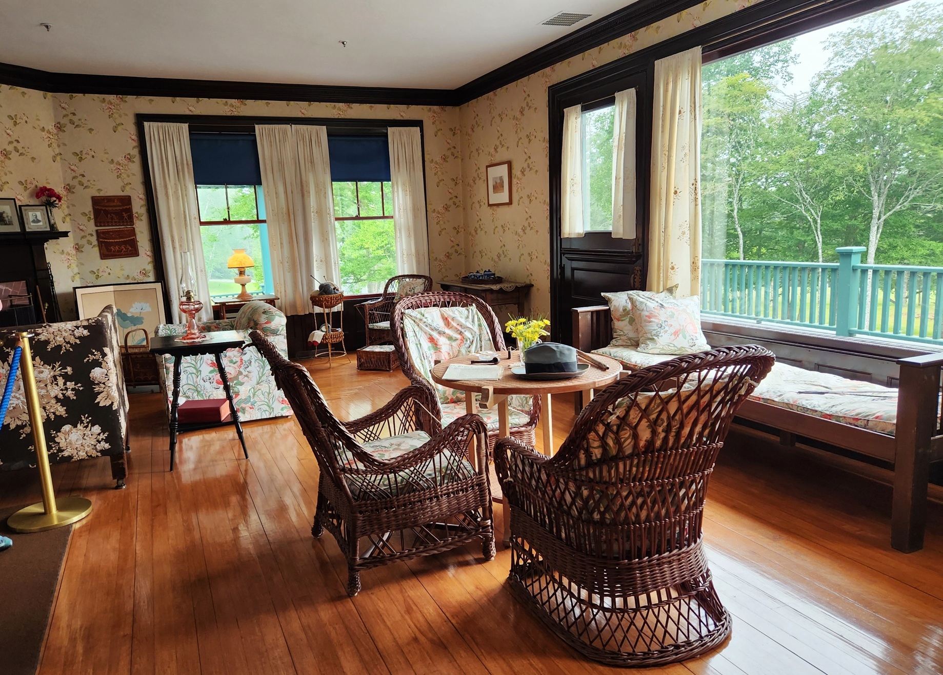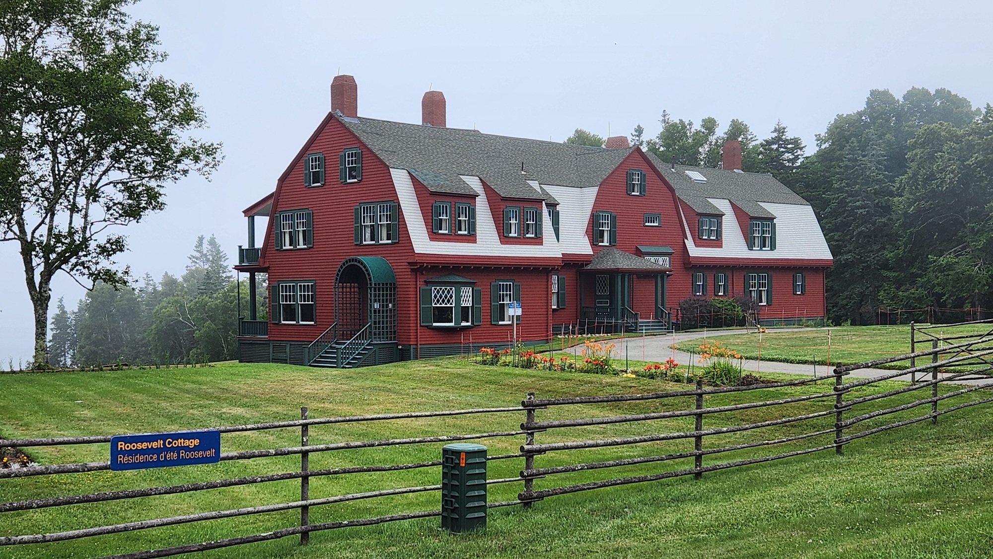 A docent-led tour of FDR’s home, lunch on the deck of a former ‘cottage’, a ranger-talk on Art at Campobello, and a walk through Hubbard Cottage took up most of our day there; a day when the fog decided to hang around all day, until we left.